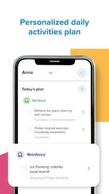→ Developmental milestones and progress reports: Keep milestones up to date by completing activities or checking the Progress tab, where you can view progress reports in each area of child development, similar to the ones pediatricians use.