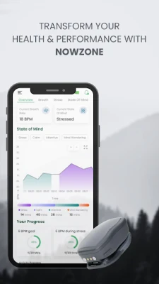 Introducing NowZone, World’s First instant Stress Reduction wearable device designed to improve mental & physical health naturally with no side effects. NowZone goes beyond tracking physical exercise and optimal diet plans, focusing solely on scientifically proven breath metrics that significantly impact your mental and physical well-being. It outperforms other leading wearables by accurately monitoring your state of mind and breath, providing accurate real-time stress and mind-wandering alerts along with slow deep breathing @6BPM, insights on mental health and much more, customized to your goals to help you optimize your well-being, making NowZone one of the most powerful, most accurate, and most wearable human performance tool you can buy.