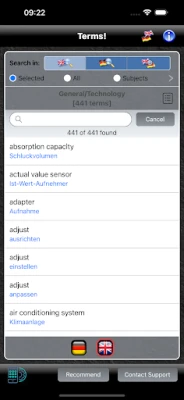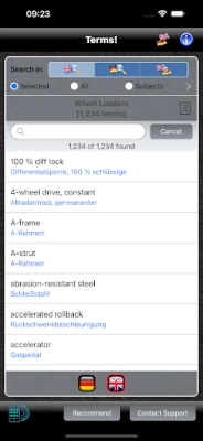 English-German/German-English dictionary containing far more than 50000 special terms sorted into 24 subjects. This practice-oriented app contains terminology mainly derived from actual translation projects and, therefore, is suitable for translation professionals and a generally interested audience alike. For example, if you want to read and understand (or translate) German divorce papers or driver's license regulations, you will find all required terminology in this app and not in a "normal" dictionary.