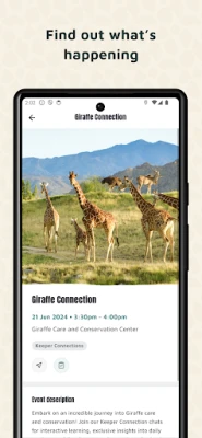 Navigate effortlessly with step-by step directions around the park, journey along the garden trails, stay up to date on when the next keeper connection takes place, and gain educational insights about our animals and conservation efforts. Whether you're a solo adventurer or a family outing, download now and unlock the wonders of nature!